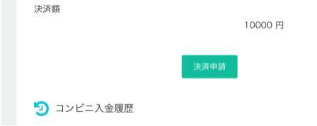 コンビニ支払いは1,756円からの受付となりますのでご注意ください。入金したい金額と必要な情報を入力し、「決済申請」を押してください。決済申請をすると、支払先のコンビニ選択画面にうつります。