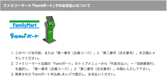 コンビニ支払いでの入金方法